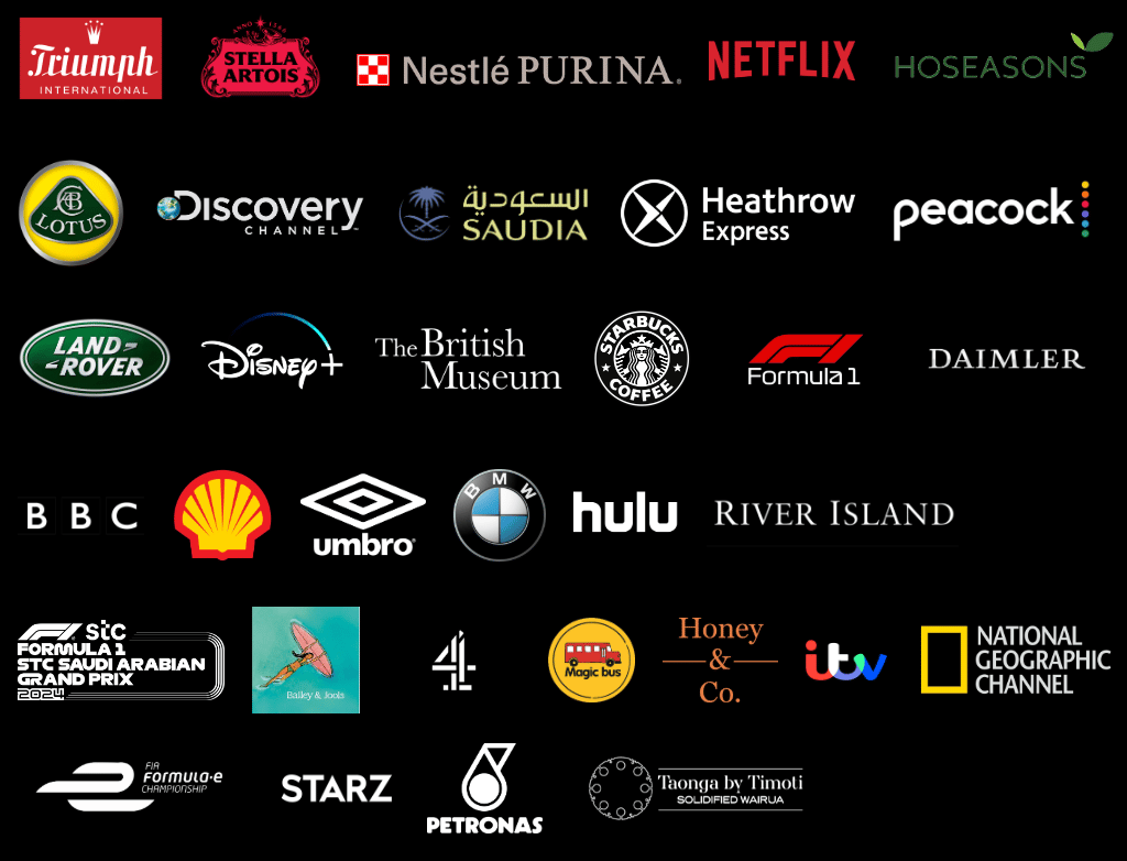Combining innovative visual style, narrative flair, and a consummate attention to detail, Screen Size Films has helped create bespoke films for some of the world’s leading brands including: Stella Artois, Shell, Starbucks, Saudia Airlines, BMW, Daimler Trucks, Team Lotus F1, Heathrow Express, Normandy Memorial Trust, Umbro, River Island, Nestle Purina, Triumph Underwear, Magic Bus, Hoseasons.