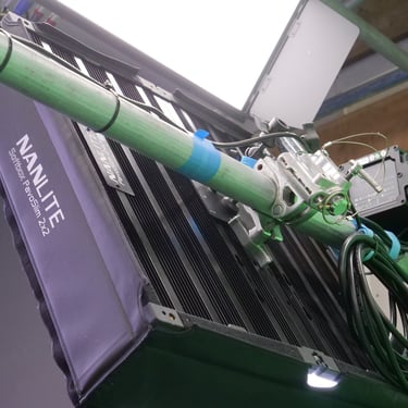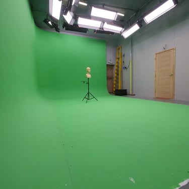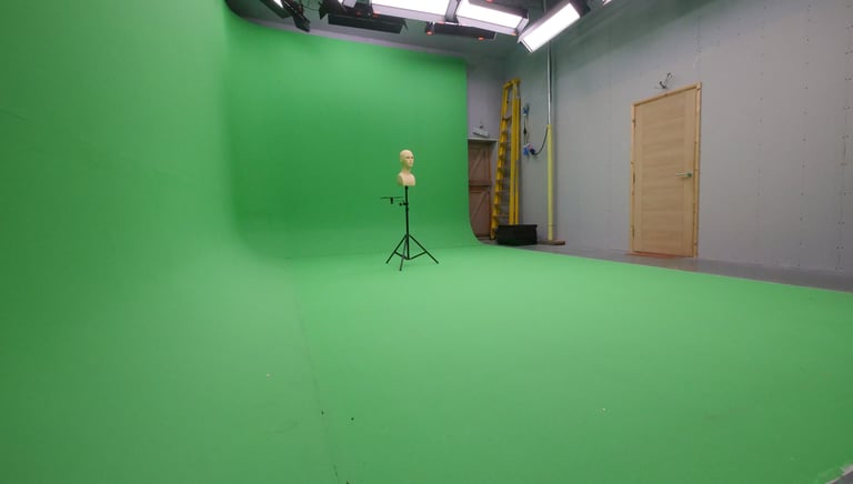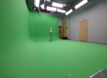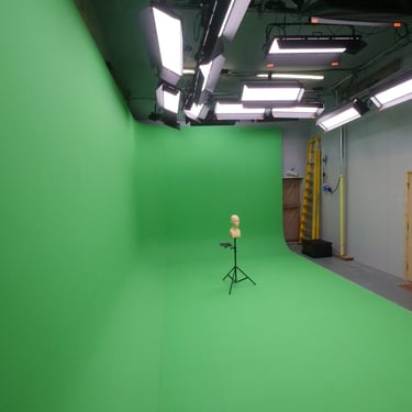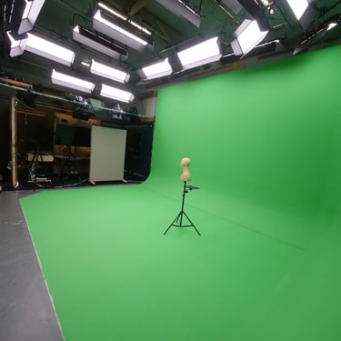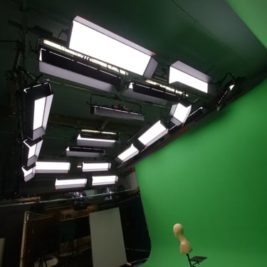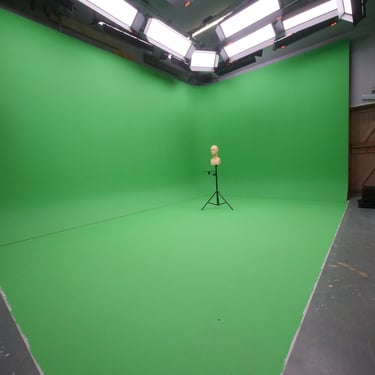 The cyclorama is painted with Rosco Chroma Green paint to provide a high quality, even green shade. The extensive DMX controlled lighting layout has been designed by an industry professional to ensure even lighting of both cyclorama and subjects. 21 high CRI, Nanlux LED panels are temperature controlled between 2700K and 7500K with soft, even lighting.